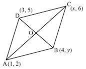 Let (1, 2), (4, y), (x, 6), and (3, 5) are the coordinates of A, B, C, D vertices of a parallelogram ABCD.