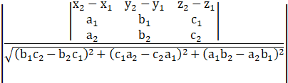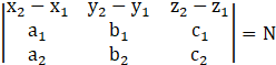 Here, (x1, y1, z1) = (2, 5, 0) and (x2, y2, z2) = (0, –1, 1)