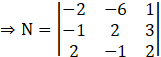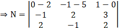 ⇒ N = (–2)[(2)(2) – (–1)(3)] – (–6)[(–1)(2) – (2)(3)] + (1)[(–1)(–1) – (2)(2)]