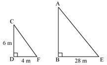 A vertical pole of length 6 m casts a shadow 4 m long on the ground and at the same timea tower casts a shadow 28 m long. Find the height of the tower