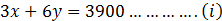 The coach of a cricket team buys 3 bats and 6 balls for Rs 3900. Later, she buys another bat and 2 more balls of the same kind for Rs 1300. Represent this situation algebraically and geometrically.