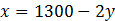 X = 1300 – 2(1300) = 1300 – 2600 = -1300
