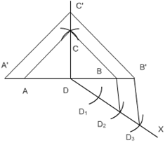 viii. Draw a line from D3which is parallel to D2B meeting the extension of AB at B’.