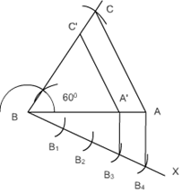 vii. Draw a line from B3such that it is parallel to B4A so that it meets AB at point A’.