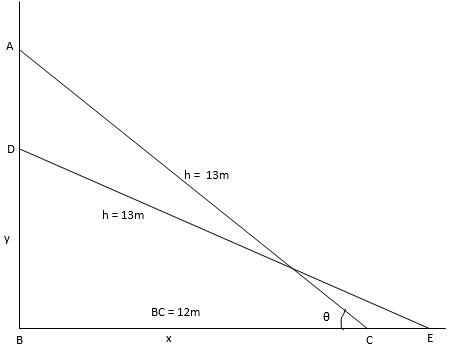 Let AC be the position of the ladder initially, then AC = 13m.