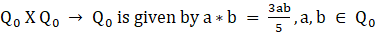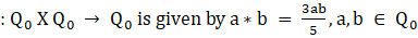 Let * be a binary operation on Q0 (Set of non – zero rational numbers) defined by a * b = 3ab/5 for all a, b ∈ Q0.