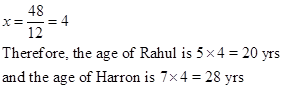 The ages of Rahul and Haroon are in the ratio 5:7. Four years later the sum of their ages will be 56 years. What are their present ages?