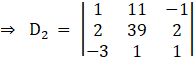 ⇒ D3 = 1[ – 5 – (39)(2)] – ( – 4)[2 – (39)( – 3)] + 11[4 – ( – 5)( – 3)]