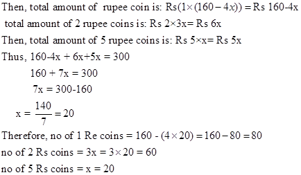 And no of 1 Rs coin = 160 –(3x+x) = 160 - 4x