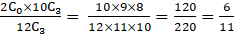 [Since there are 10 good eggs so for selecting all good we took all three from 10 and 0 eggs from 2 bad ones. Total sample points are no of ways of selecting 3 eggs from total of 12 eggs]