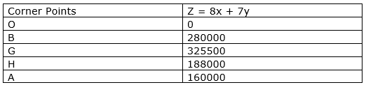 The maximum value of Z is 325500 which is attained at G(10500, 34500).