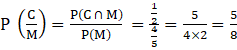 The probability that a student selected at random from a class will pass in Mathematics is 4/5, and probability that he/she passes in Mathematics and Computer Science is 1/2. What is the probability that he/she will pass in Computer Science if it is known that he/she has passed in Mathematics?