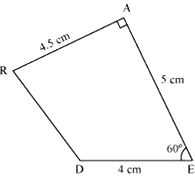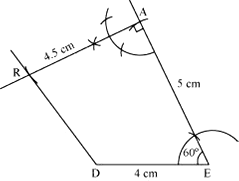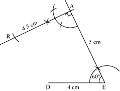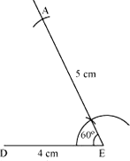 (a) Draw a line segment DE of 4 cm and an angle of 60° at point E. The given vertex A is 5 cm away from vertex E so cut a line segment EA of 5 cm from this ray