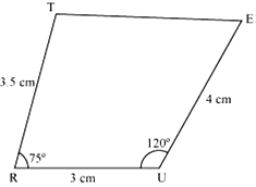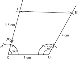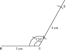 (a) Draw a line segment RU of 3 cm and also an angle of 120° at point U