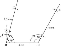 (b) Now, draw an angle of 75° at point R. As the given vertex T is 3.5 cm away from vertex R so cut a line segment RT of 3.5 cm from this ray