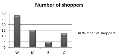 The shoppers who come to a departmental store are marked as: man (M), woman (W), boy (B) or girl (G). The following list gives the shoppers who came during the first hour in the morning: