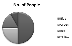 Draw a pie chart showing the following information. The table shows the colours preferred by a group of people.