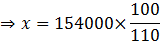(100 + 10)% of x = 154000