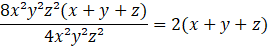Common factor of 8(x3y2z2 + x2y3z2 + x2y2z3) is x2y2z2