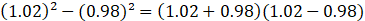 (ii) (1.02)2 - (0.98) 2