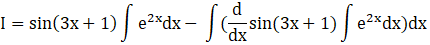 Now Integrating by parts choosing sin (3x + 1) as first function and e2x as second function we get,