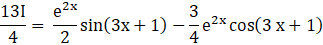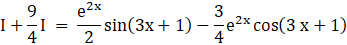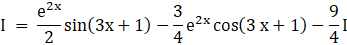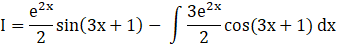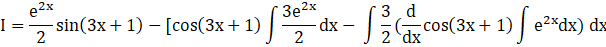 Now again integrating by parts by taking cos(3x + 1) as first function and e2x as second function we get,