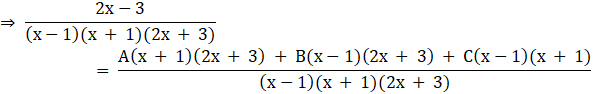 ⇒ 2x – 3 = A(x + 1)(2x + 3) + B(x – 1)(2x + 3) + C(x – 1)(x + 1)……(ii)