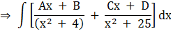 We put the values of A, B, C, and D values back into our partial fractions in equation (i) and replace this as the integrand. We get