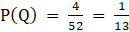 ⇒ P(Q) = P(Drawing Queen from 52 cards deck)