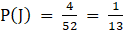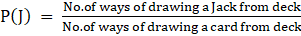 ⇒ P(J) = P(Drawing Jack from 52 cards deck)