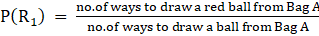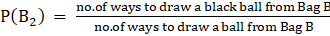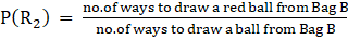 ⇒ P(DRB) = P(drawing black balls from bag A and red ball from bag B) + P(drawing black balls from bag B and red ball from bag A)
