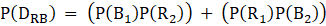 ⇒ P(DRB) = P(drawing one red ball and one Black ball)