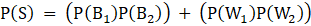 ⇒ P(S) = P(drawing two balls of same colours) = P(drawing black balls from each bag) + (P(drawing white balls from each bag)