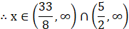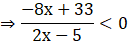 ⇒ 8x – 33 + 33 > 0 + 33 and 2x – 5 + 5 > 0 + 5