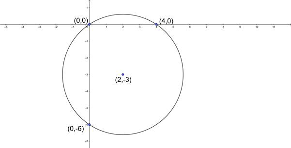 Write the coordinates of the centre of the circle passing through (0, 0), (4, 0) and (0, - 6).
