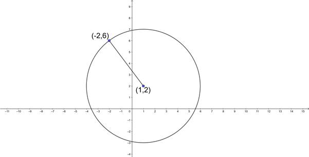 We know that the radius of the circle is the distance between the centre and any point on the radius. So, we find the radius of the circle.