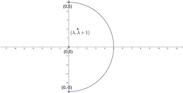 If the point (λ, λ + 1) lies inside the region bounded by the curve