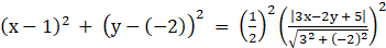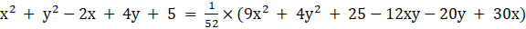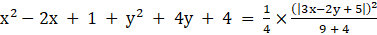 ⇒ 52x2 + 52y2 - 104x + 208y + 260 = 9x2 + 4y2 - 12xy - 20y + 30x + 25