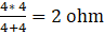 The effective resistance across the resistors of 4 ohm connected in parallel is: