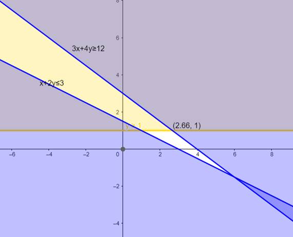 x + 2y≤ 3, 3x + 4y≥ 12, y ≥ 1, x ≥ 0, y ≥ 0
