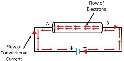 The conventional direction of current is taken from positive terminal of the battery through the various circuit components & then to negative terminal.
