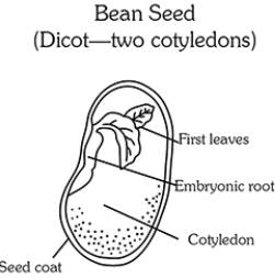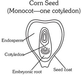 1. Monocot: having a single cotyledon. Example: corn seed.