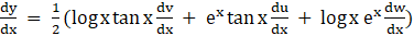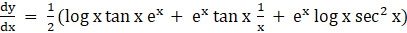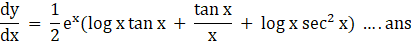 Let, y = ex log √x tan x = ex log x1/2 tan x = 1/2 ex log x tan x