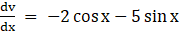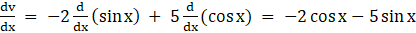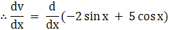 As, v = – 2 sin x + 5 cos x
