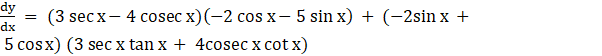 Let, y = (3 sec x – 4 cosec x)( – 2 sin x + 5 cos x)