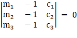 ⇒ m1(-c3 + c2) + 1(m2c3-m3c2) + c1(-m2 + m3) = 0