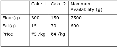 Let ‘x’ and ‘y’ units of cake 1 and cake 2 be made.