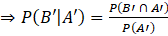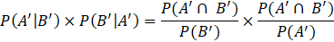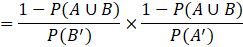 If P(A) = 2|5, P(B) = 3|10 and P(A B) = 1|5, the P(A′|B′).P(B′|A′) is equal to