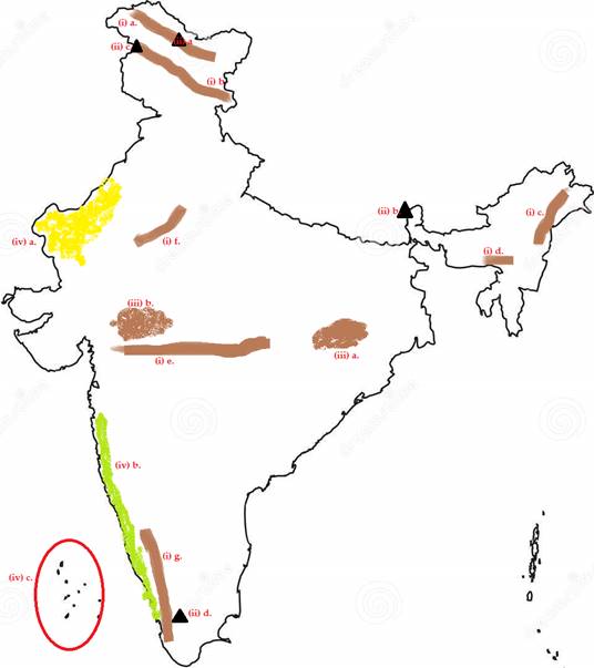 (i) Mountain and hill ranges –
