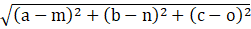 The distance between any two points (a, b, c) and (m, n, o) is given by,